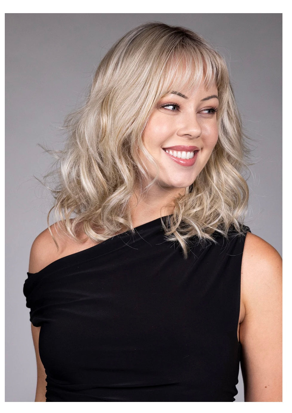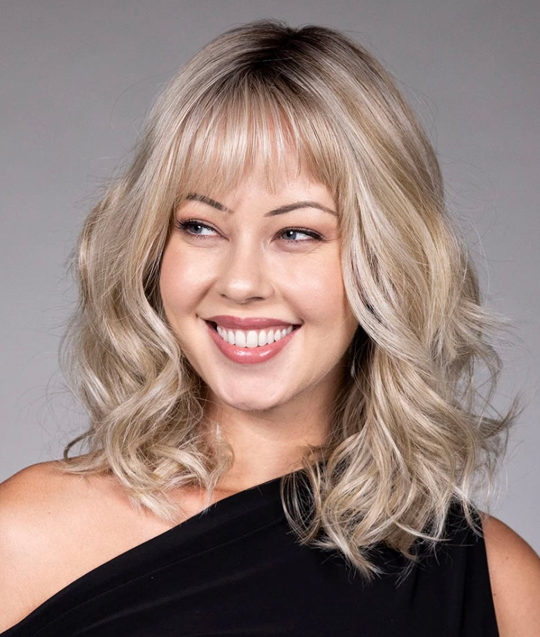 Simone by Belle Tress blends effortless style with natural realism. This shoulder-length wig features soft, tousled waves and wispy bangs that frame your face beautifully. Its extended lace front and full monofilament top create a flawless hairline and versatile parting, while the hand-tied cap offers lightweight comfort and natural movement. Perfect for daily wear or special occasions, Simone enhances your look with chic sophistication and ease.