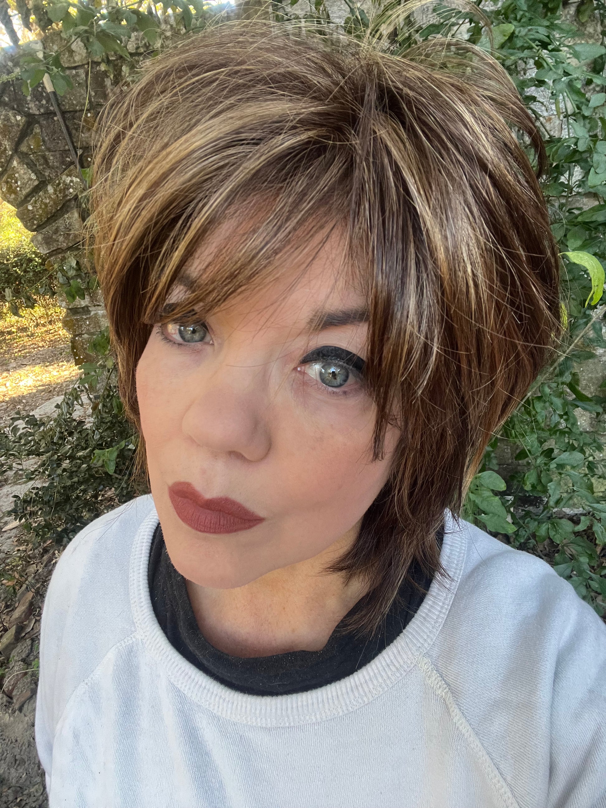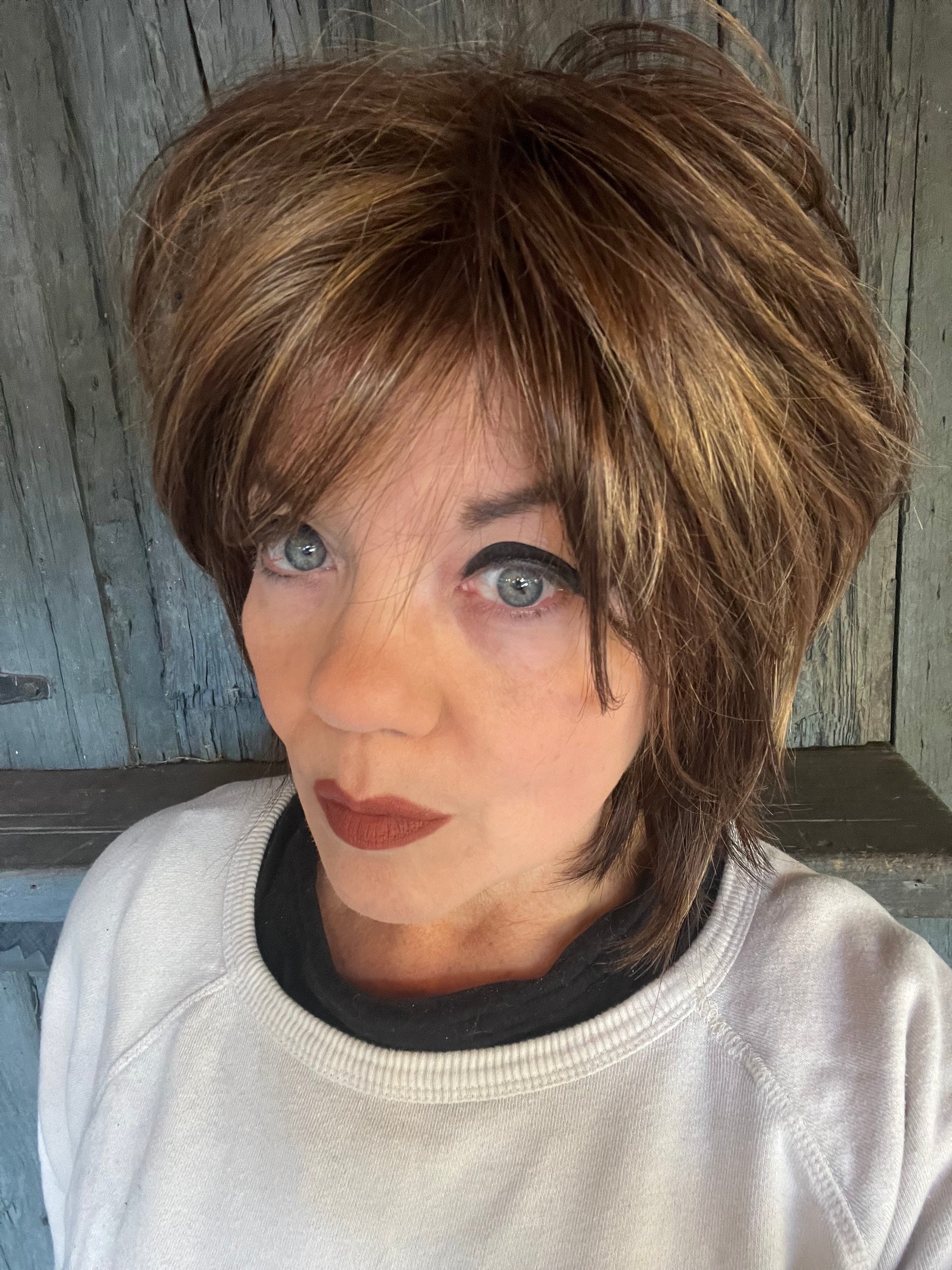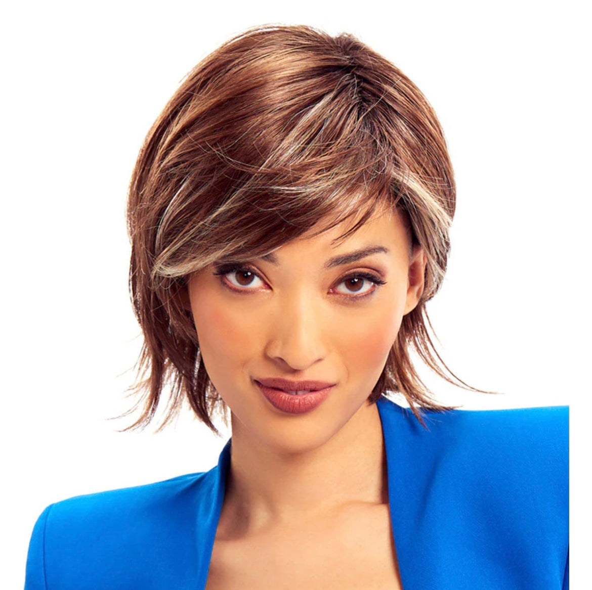 Unique hand knotting at the top and hairline looks like the hair is growing right out of your scalp. Feathered layers give you a high-style shag without the weight usually associated with other wigs.